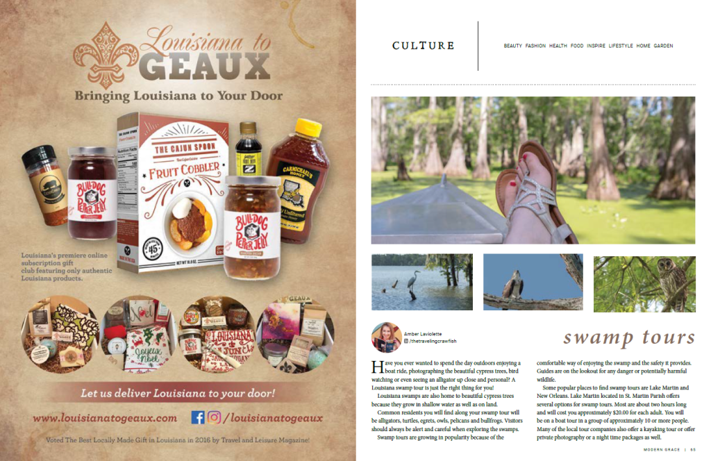 I was the Art Director for Modern Grace Magazine from October 2018 through June 2021. This publication seeks to highlight and uplift individuals. I created the style for the magazine as well as most of the editorial and advertisement designs.